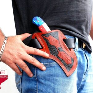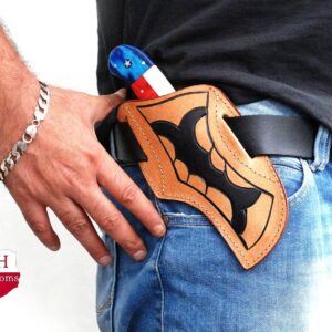 CUSTOM HAND MADE PURE LEATHER SHEATH FOR FOLDING POCKET KNIFE AH DAMASCUS AH-903