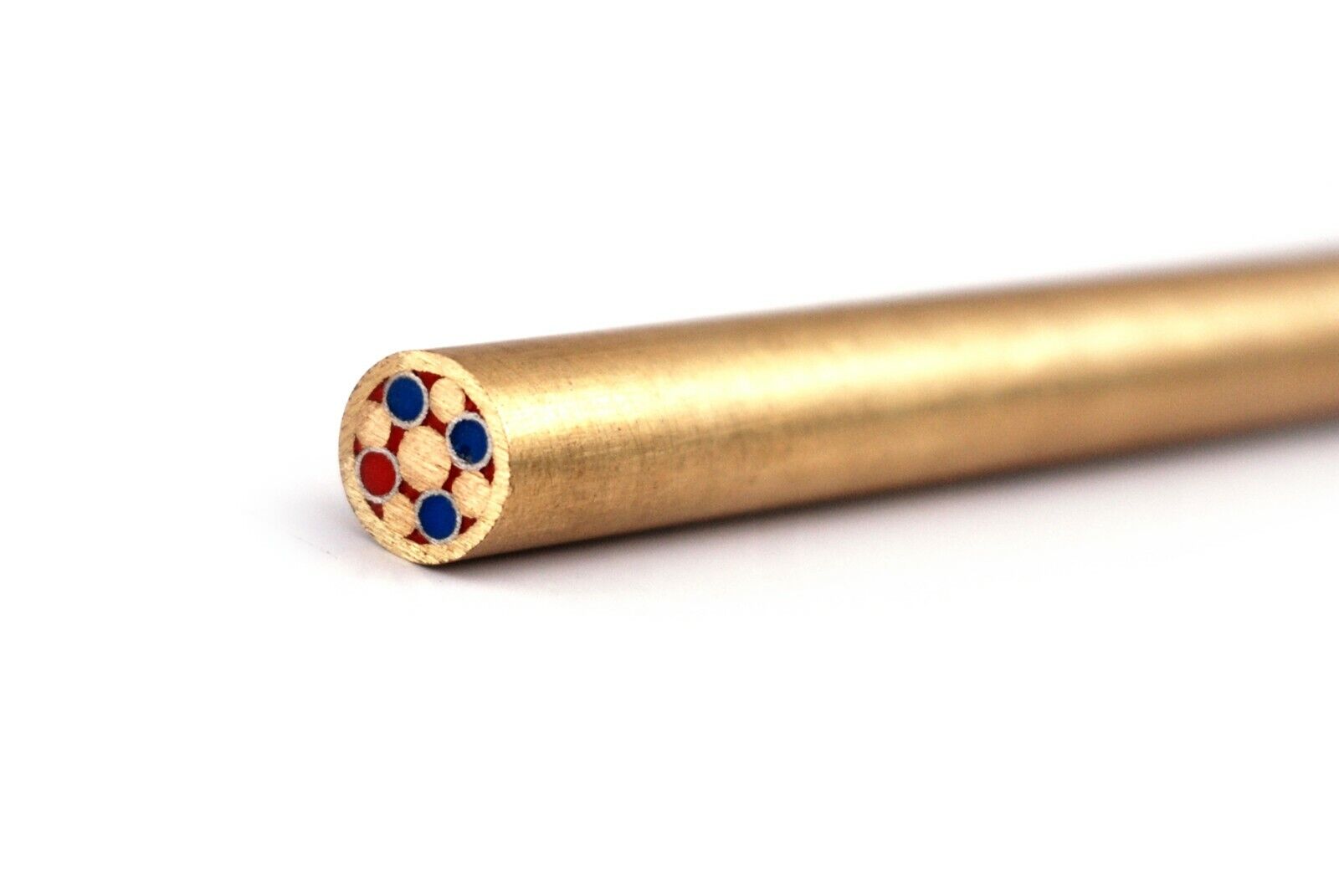 It can be used as a solid pin or sliced into thin pieces for inlays. The pattern exists along the entire pin length.