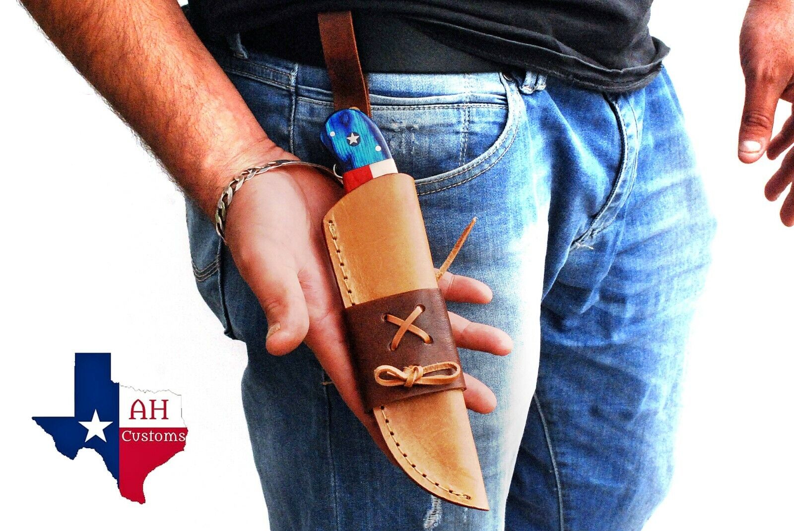 This beautiful sheath is made from pure leather. Sheath is hand made and hand sewn with double stitching to ensure long lasting life. The actual engraved design of the sheath may vary once received. If you are interested in a specific design, please contact buyer prior to purchasing. All available designs are displayed in the pictures above.