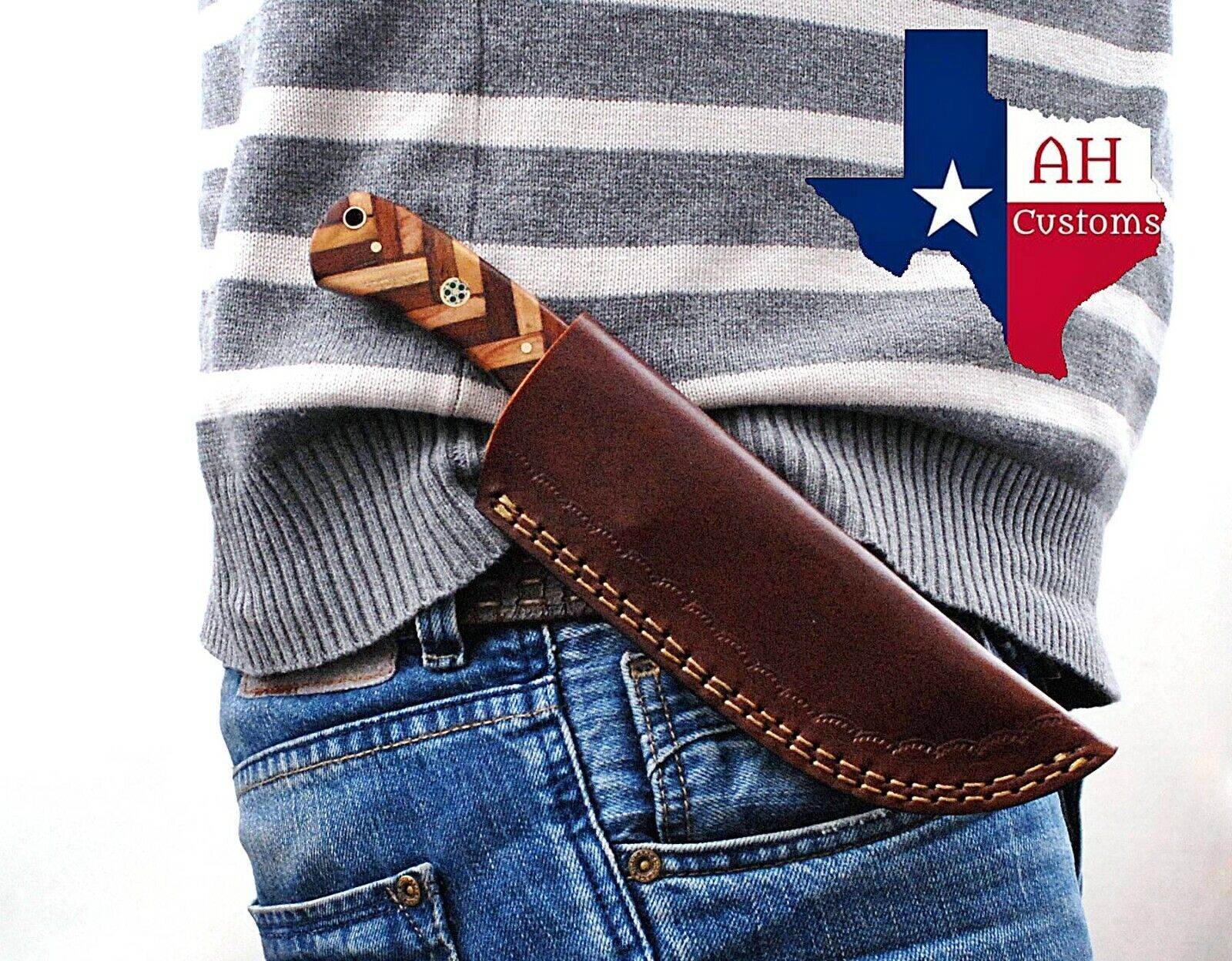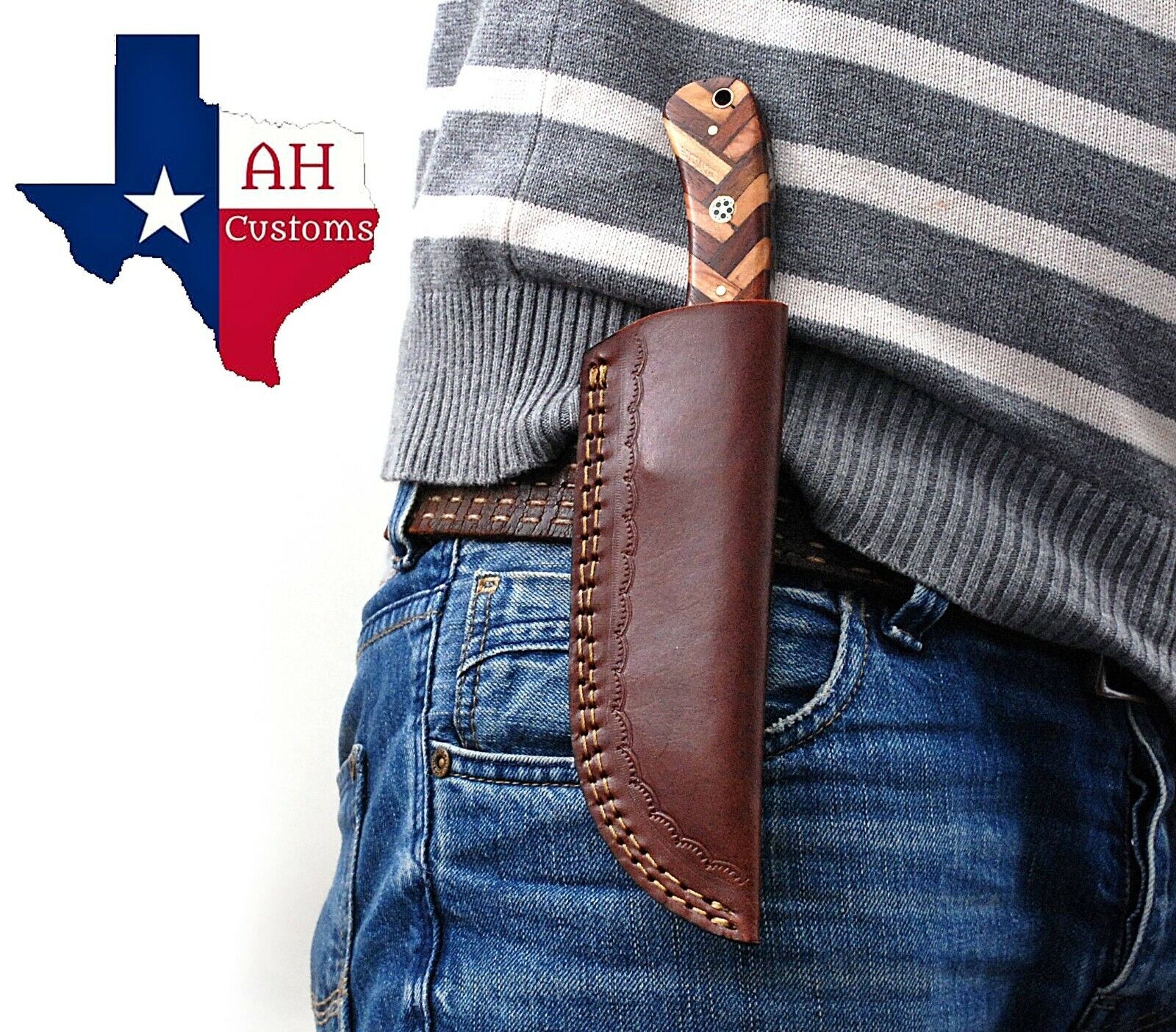 CUSTOM HAND MADE PURE LEATHER SHEATH FOR FIXED BLADE KNIFE AH-905
