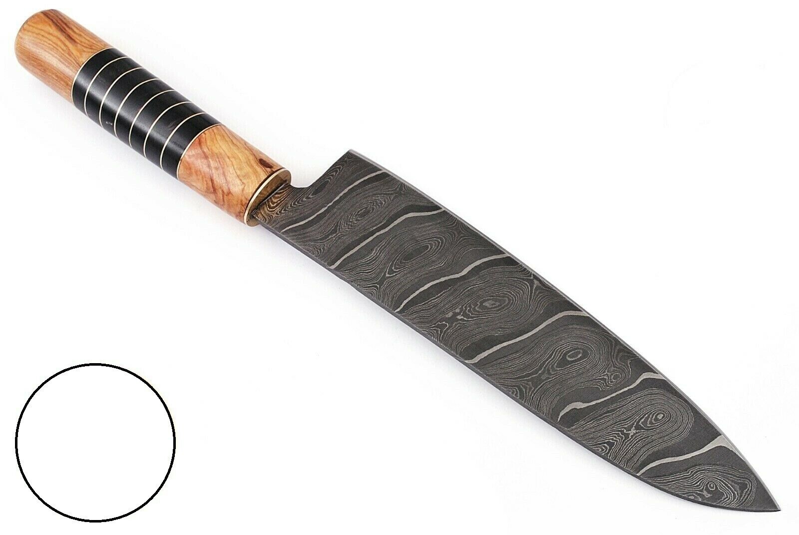 CUSTOM HANDMADE FORGED DAMASCUS STEEL CHEF KNIFE W/ WOOD & BULL HORN HANDLE