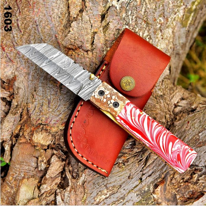 HAND FORGED DAMASCUS STEEL FOLDING POCKET KNIFE