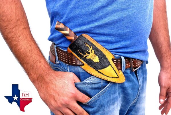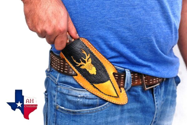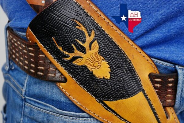Description CUSTOM MADE PURE LEATHER HAND ENGRAVEDSHEATH FOR FIXED BLADE KNIFE UNIVERSAL COVER Length: 8″ Inches Width: 2″ Inches