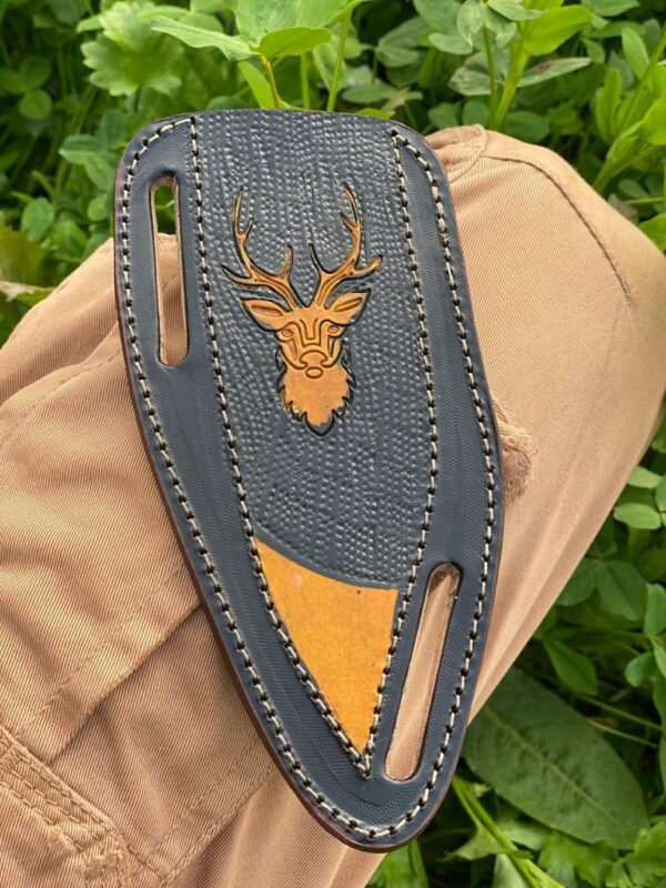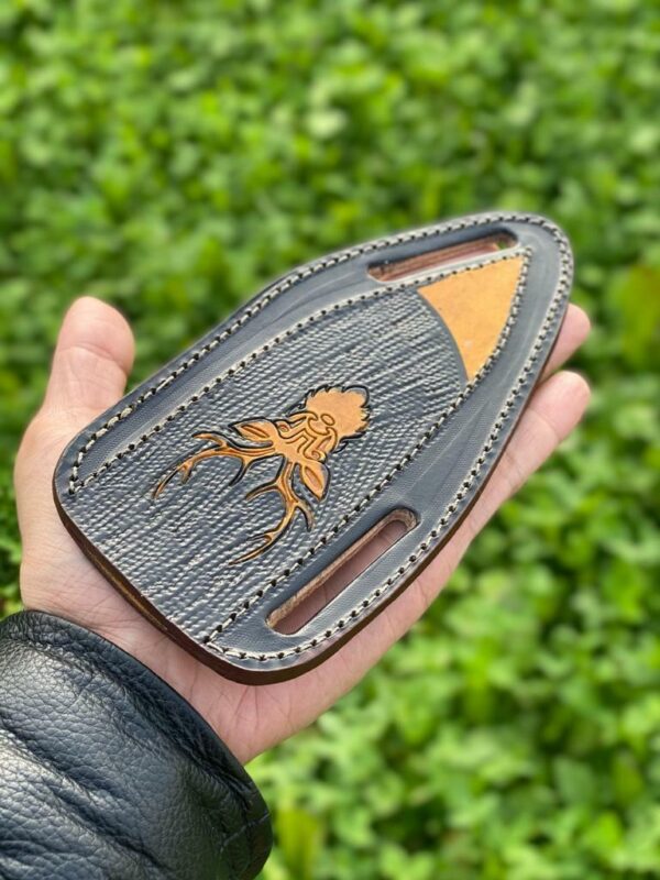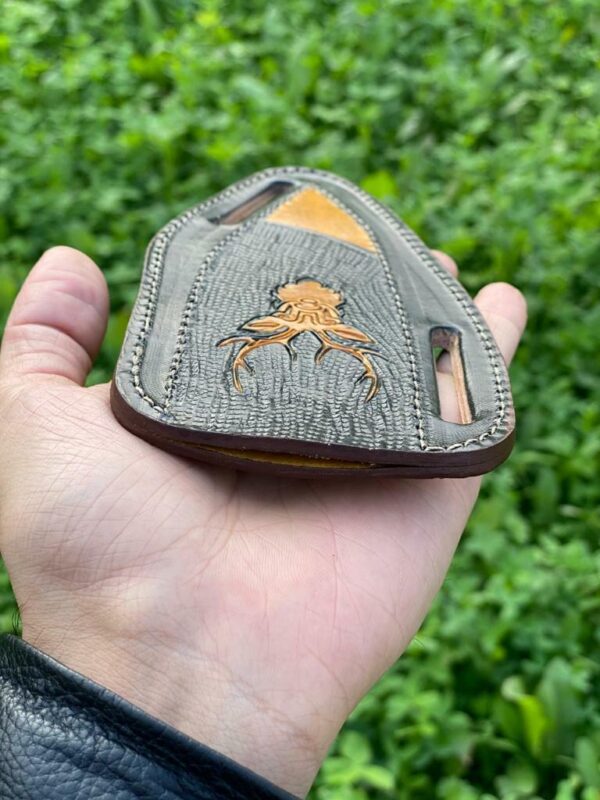 Description CUSTOM MADE PURE LEATHER HAND ENGRAVEDSHEATH FOR FIXED BLADE KNIFE UNIVERSAL COVER Length: 8″ Inches Width: 2″ Inches