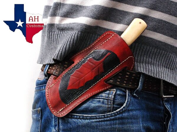 Description CUSTOM MADE PURE LEATHER HAND ENGRAVEDSHEATH FOR FIXED BLADE KNIFE UNIVERSAL COVER Length: 8″ Inches Width: 2″ Inches